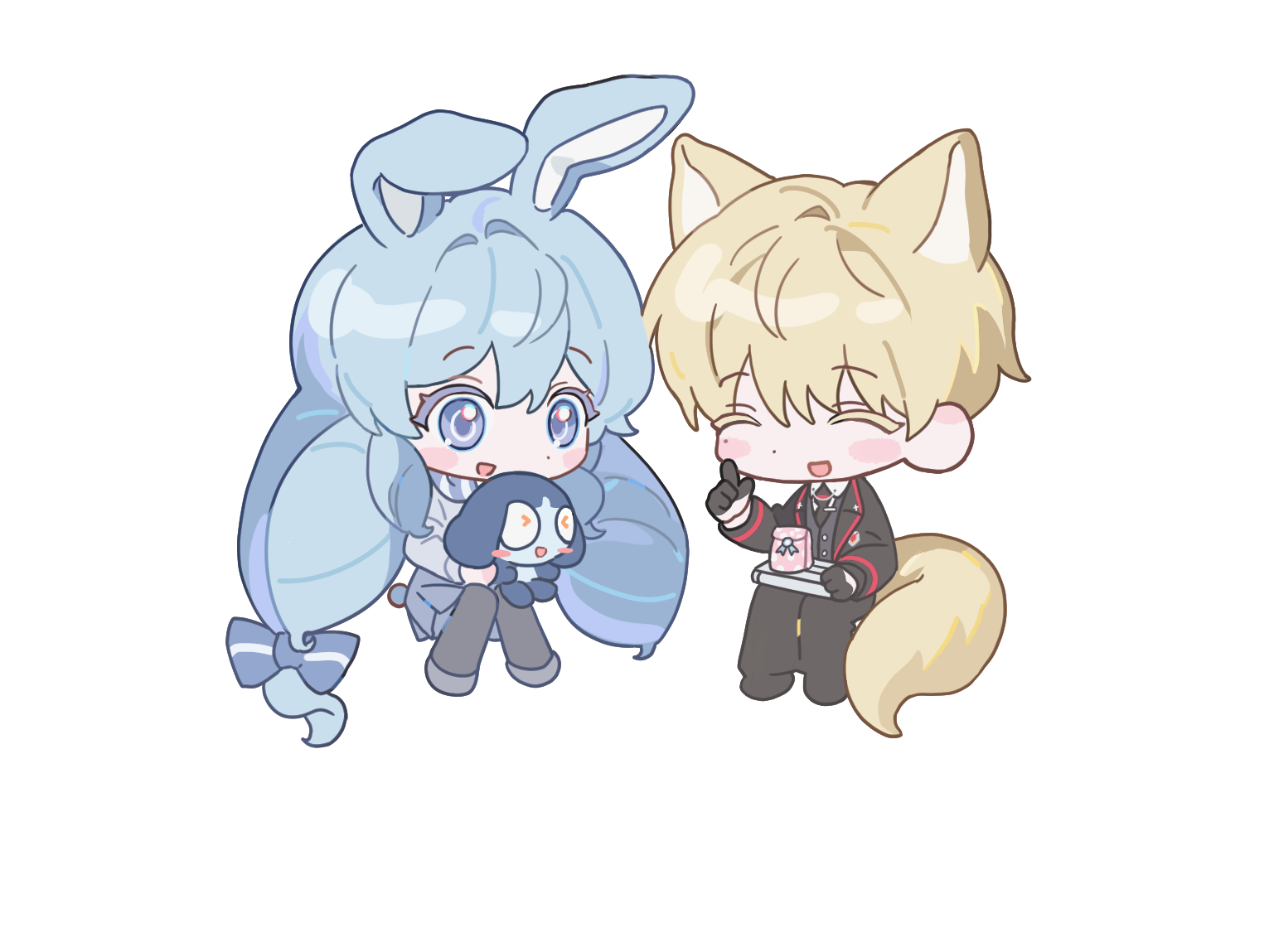1페어 > 35000A/B포지션 : (ex. A: 청발 여캐 B: 금발 남캐)상징 동물: (무조건 귀 달린 동물만 가능! 특징 완벽 구현X 뿔X)전체 의상 : 치마 바지 선택O (하의 길이 선택 가능 O 롱/숏 ) 긴팔 only 소매 걷기o ex: A: 롱바지 B: 숏치마A 소품: 보통 상대캐 동물화 인형. 간단한 거면 다른 것도 O 복잡한 것X (ex.누이) B 소품 고정말풍선 대사 : 간단한 것만 가능!그외 : 개별 투명화 추가 및 빠른 마감 여유 / 없으실시 공란모두 A/B를 각각 순서대로 기재 부탁드립니다! 구글 드라이브 x샘플 내 완전히 웃는 표정 등은 따로 기재하지 않는 이상 나오지 않습니다! > 모두 뜬 눈으로 진행 https://open.kakao.com/o/sYJs8gKg 류진 / @J..